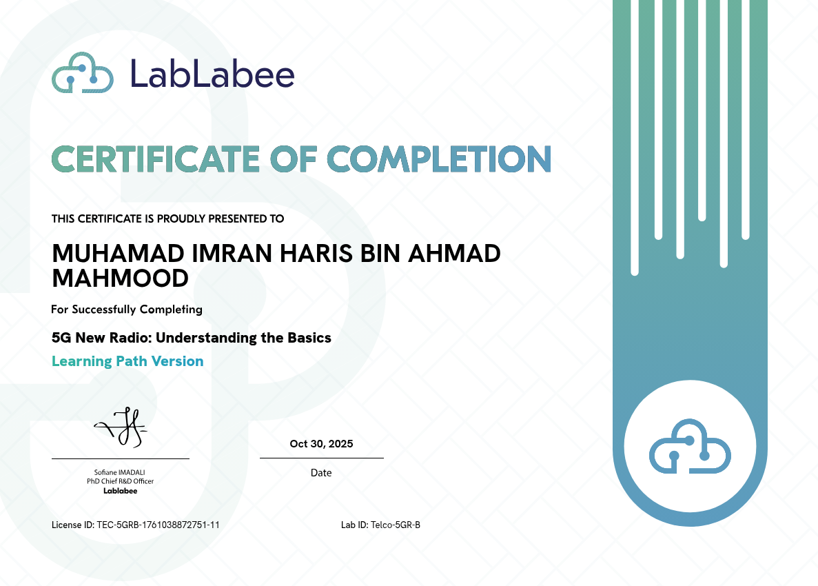 This comprehensive Lab environment is designed to provide in-depth exploration of the emerging 5G radio technology. Participants will gain valuable insights into the key concepts driving 5G, including the new frequency band allocations, deployment strategies, and the fundamental connection establishment process between user equipment and the 5G base station. Through a structured, step-by-step approach, this lab is tailored for those new to 5G radio fundamentals, offering a thorough understanding of this transformative wireless technology.